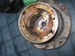 What I've got is the base section which bolts to the deck. Protruding up from this base section is an aluminium can or tube which contains the motor windings. The outside of the can is covered in old grease and fits inside the drum. There is a detachable rubber seal around the base if the can, everything is undone but the can is still sticking up from the base so it looks a bit like a top hat. What I'm not sure is if this can is part of the base casting or is just stuck in position and in need of a gentle tap or two to remove it.
