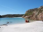 This bay is on the south of Mull and only easily accessible by sea so seldom gets any visitors. The sand is pure white and the sea crystal clear, the weather helps of course.