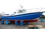 Mine is the long wheelhouse (sports cruiser) varient and has the full keel with the bar under the prop. It's currently fitted with a single 300HP Perkins Sabre.