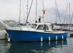 Beste Harold, I mounted the trust bearing in combination with a Pyton CV drive shaft. It eliminates the need of exact alignment between the propshaft and the gearbox and yearly checking it. Further the engine can rest on soft rubber engine mounts as the prop don't push against the engine, so no engine or propshaft vabrations in Tommie no more. The engine is running very fine, but smokes a bit for a few seconds when I go suddenly full trottle, see picture, I will check the turbo pressure this weekend. With the Perkins 265 the topspeed was 13 kn. at 1558 rpm shaftspeed with a 3 blade 21 x 20. While waiting for parts, I had all the time to finish the inside and repaint the hull again. Last Saturday I went fishing and as you see they where waiting for me.