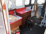 A few more pics from progress and this weekends sunny trip in local waters to warm up your Northern Hemisphere winter . Girvan as RNLI 33 12 is now called was relaunched last week , not with Dutch liquorice but with a bottle of cheap champagne . She had some minor hull repairs done and is now shiny again .As a few other contributors to the forum indicated of their boat : looks great as long as you observe some distance. WC now in place .Ongoing discussion as to how much to cover up the " business " bits. I am quite happy to admire the automatic Halon BTM fire system while sitting on the throne .A magnificent piece of British/RNLI engineering ! Now I have to wait and see if my lady wishes pannelling. Next will be the small galley at the aft/port corner of the wheelhouse .Again some "business" bits are in the way , namely the fuel tanks change over controls and the wheelhouse air intake fan . I don t want to touch any of this. We have decided to install a 2 burner Origo alcohol/meths stove. Anyone has experience with these ? Next job a nice bed in the "survivors " space .The headlining in wheelhouse has already been replaced. I will also post a photo of another converted RNLI Lifeboat in our local Marina. It is a Waveney class , owned by an American couple . Steel hull , quite a bit bigger , same Caterpillar engines. Thanks for your warm welcome and encouraging words of wisdom Wilfried