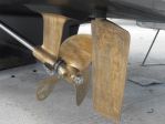 Not sure on the 3 or 4 blade propellor question.With the twin 200hp Volvo's she pulls her max 3750 rpm, with clean bottom and half tanks seeing 24 knots.